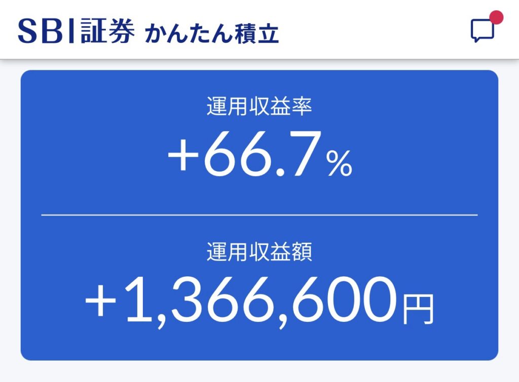 実際の僕のNISAでの運用収益です。働き始めてからすぐにSBI証券で口座を開設し、毎月3万円積み立てを続けた結果です。特別なことは何もしていません。やったことは口座を開設し、積み立て設定しただけ。